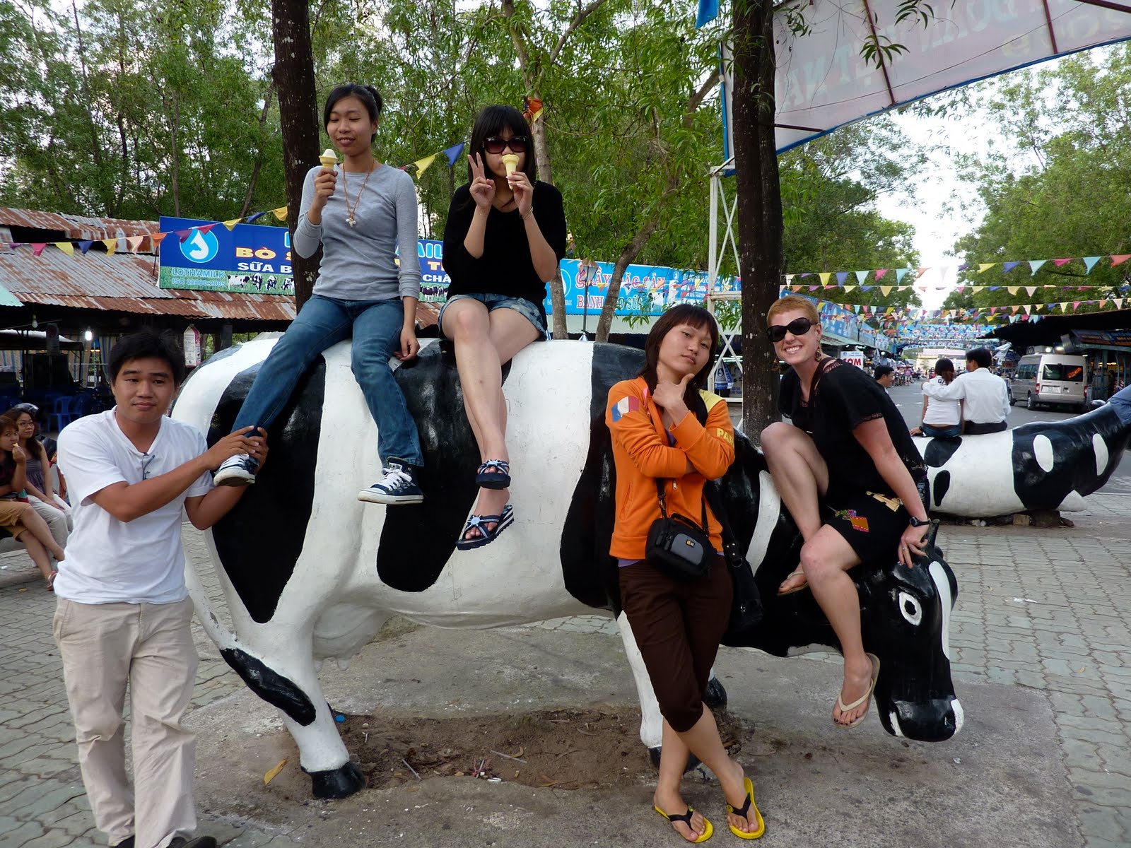On our way back to Saigon, we stopped at a dairy outpost where they sold milk products and had a bunch of cow statues. It was hilarious and definitely made me think of Wisconsin although the ice cream and milk quality was not nearly as good. (That is to be expected, of course!) The whole complex made me chuckle. I was glad that we stopped. HCMC is more or less a transit point and the starting point of the more exploratory portion of my trip to Vietnam. Let me explain how the tourism industry operates in Vietnam. First, most tourists take what is called an open bus, meaning you arrange your journey through a travel agent, which has its own bus company and you choose how long you plan to stay in each city. Every company drops you off at different places and has different schedules for arriving at and departing a city. Second, once you are in a town, the most common way to get around is to book a tour, which is cheap and normally lackluster although some are fantastic. I mean, a tour is a tour, and for the most part, you check off what you wanted to see and bear with the inconvenience of being on a tour.